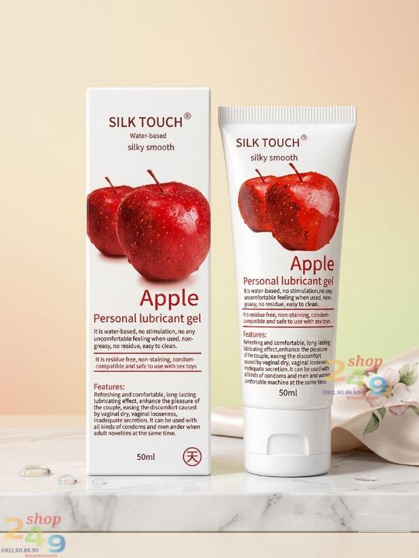 Gel bôi trơn Silk Touch Apple (50ml) - Gel gốc nước hương táo tươi mát giúp cuộc yêu trơn mượt, ngọt ngào. Xóa tan nỗi lo khô hạn, đau rát. Sản phẩm an toàn tuyệt đối, dễ rửa sạch