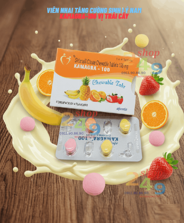 Kamagra 100mg – Viên Nhai Tăng Cường Sinh Lý Nam Vị Trái Cây (Hộp 4 Viên)